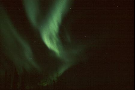 Aurora with Pleiades Cluster in background. (Look in the lower left auroral streamer).