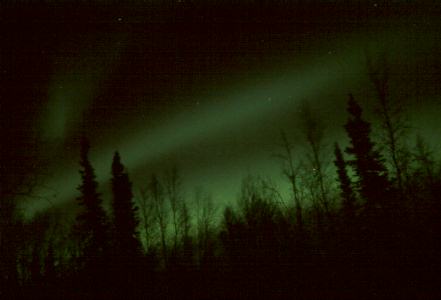 This looks like an auroral sunset. The rainbow-like bands as seen in this image are common early in the evening as the auroral activity begins.