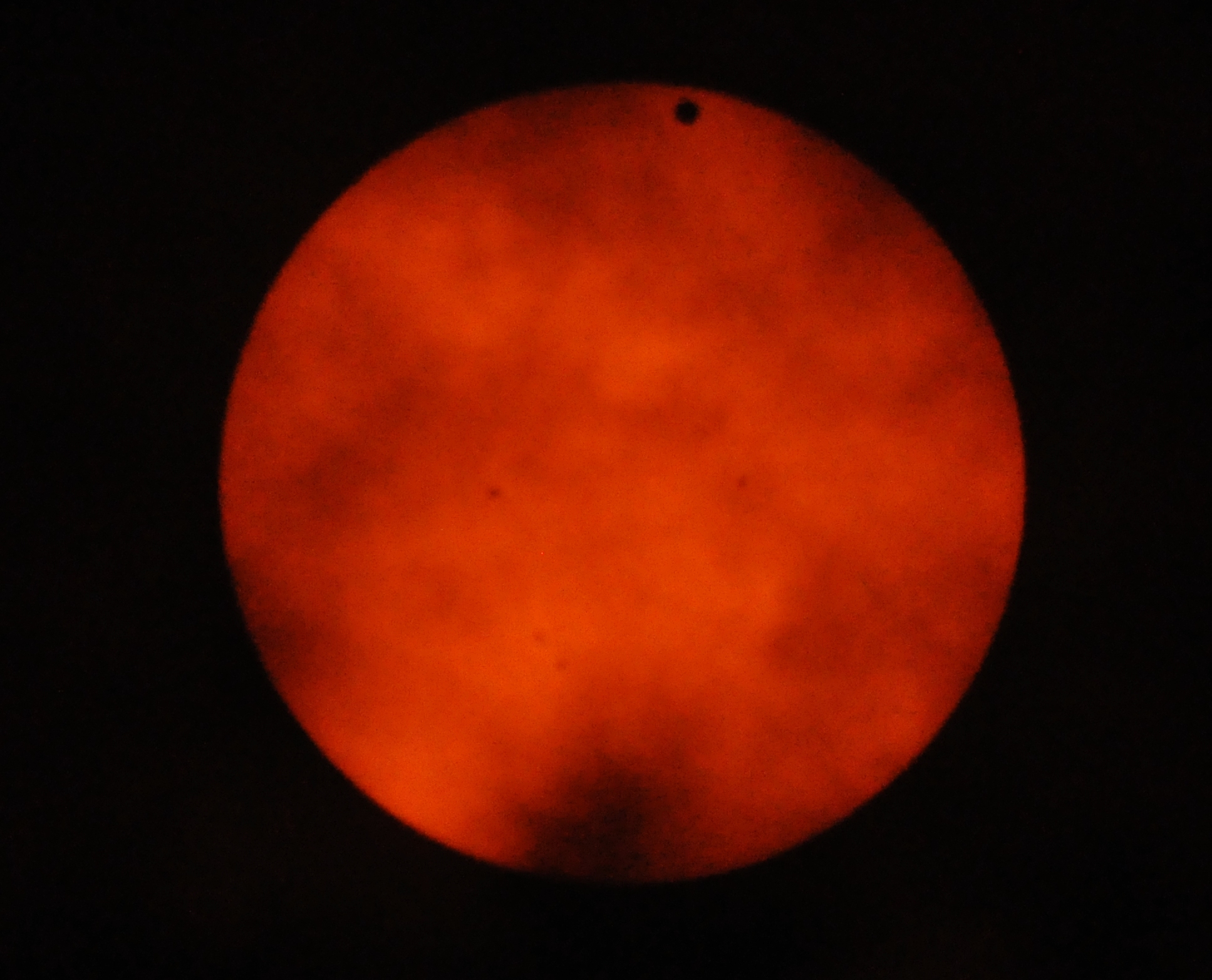 On 5 June 2012, Venus transited across the face of the Sun. This occurs when Venus passes directly between the Earth and the Sun and so appears as a dark spot on the Sun. This is a relatively rare event that occurs only four times every 243 years. The next such event will take place in December 2117. In this picture several prominent Sunspots can be seen near the center of the Sun.